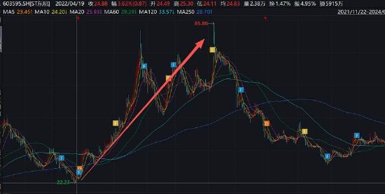 值得注意的是,东尼电子财务造假期间,股价暴涨。公司股价于22年4月底部启动,当时股价为22元/股左右,公司股价高峰在23年1月,股价超80元/股,期间股价涨幅近三倍。