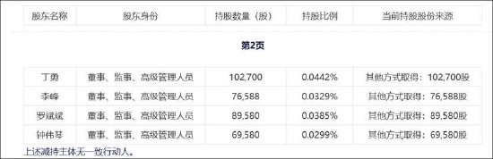 2022年9月,公司高管组团抛出一份减持计划。根据当时公告显示,副总经理丁勇先生持有公司股份102,700股,占公司总股本比例为0.0442%;副总经理李峰先生持有公司股份76,588股,占公司总股本比例为0.0329%;副总经理兼董事会秘书罗斌斌先生持有公司股份89,580股,占公司总股本比例为0.0385%;财务负责人钟伟琴女士持有公司股份69,580股,占公司总股本比例为0.0299%。