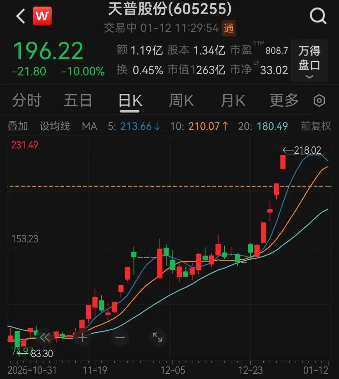 1月12日天普股份一字跌停,午间发澄清公告 |